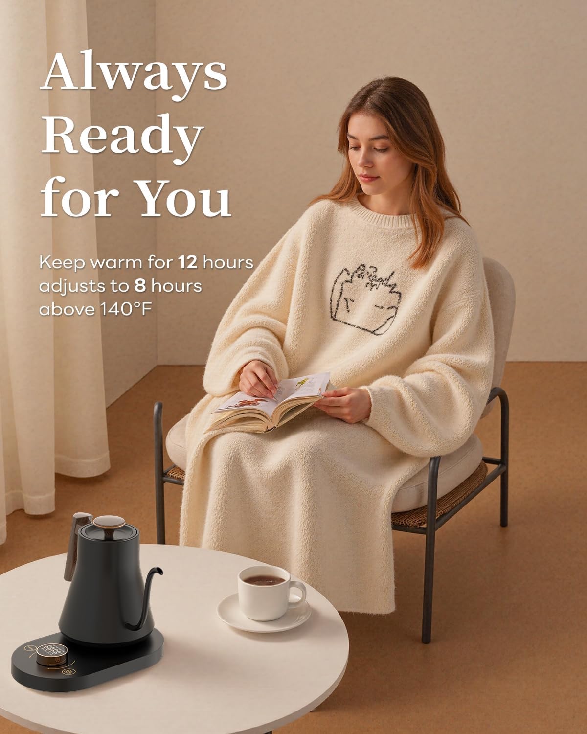 غلاية كهربائية ذكية ذات عنق معقوف مع تحكم واي فاي، غلاية لتحضير القهوة والشاي بالتقطير، دقة في درجة الحرارة ±1 درجة فهرنهايت، سخان مياه سريع الغليان مصنوع من الفولاذ المقاوم للصدأ بنسبة 100% مع خاصية الحفاظ على دفء الماء، إبريق شاي احترافي سعة 0.8 لتر، 1000 واط