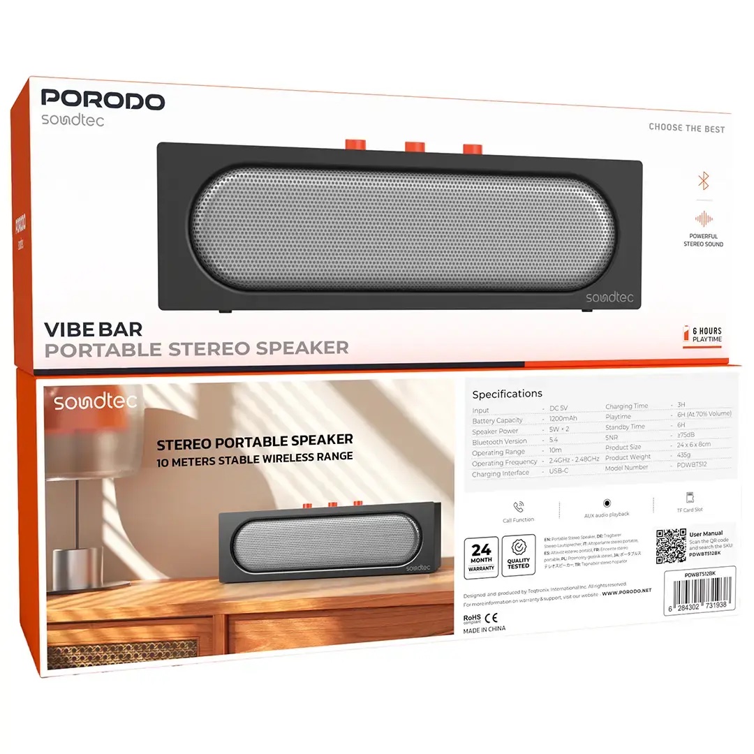 مكبر صوت بلوتوث محمول بورودو ساوندتك فايب بار ستيريو – أسود
